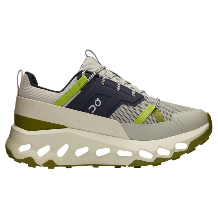 Le modèle On Running Cloudhorizon "Chalk / Seedling" fait partie de la gamme de chaussures de randonnée légère d'On, conçue pour allier le confort et la technologie de leurs sneakers de course avec la robustesse nécessaire pour les sentiers.